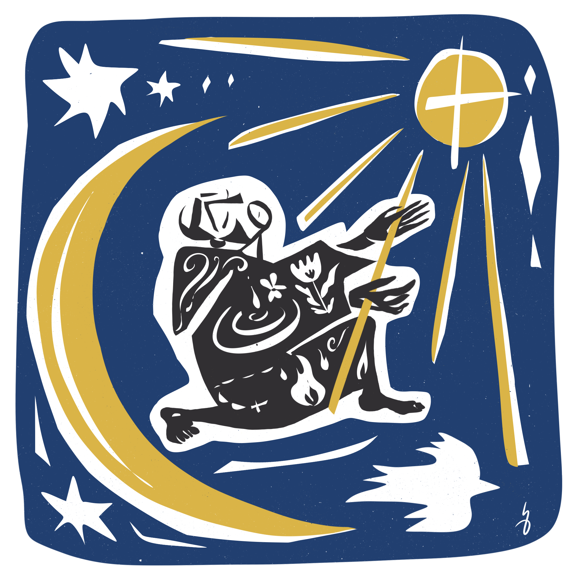 Brother Sun and Sister Moon surrounds Francis, their light illuminating the starry sky with the wonders of God’s creation!